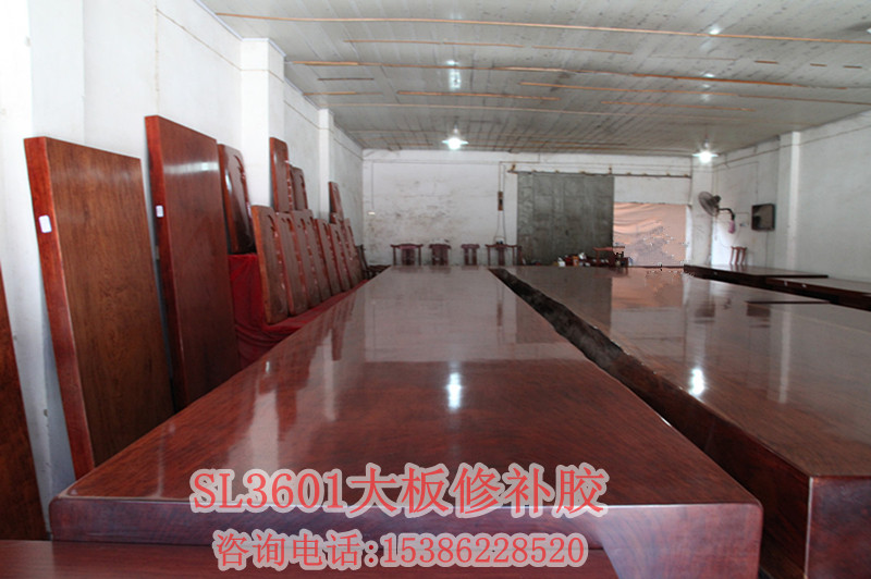 因?yàn)槟静纳厦嬗械目p隙較小,所以要選用滲透力好的膠來修補(bǔ)它,但是現(xiàn)在有很多大板加工廠用的是502類似的水性膠,這種膠雖然固化時(shí)間短,但是耐老化情況不好,對(duì)于一顆成長了上百年歷史的原木來說要體現(xiàn)它的價(jià)值當(dāng)然需要每一件都用好的材料來輔助它加工成為精品、藝術(shù)品,所以強(qiáng)烈給大家推薦SL3601透明裂縫膠這款膠顏色是完全透明的可以根據(jù)木材的顏色添加不同顏色的色粉;流動(dòng)性非常好,特別適合細(xì)小裂縫的修補(bǔ)和灌注修補(bǔ);